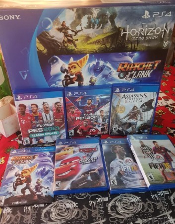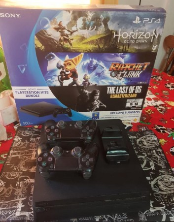 Con 7 juegos todos sus cables dos joystick cargador para dos mandos 500gb impecable su andar