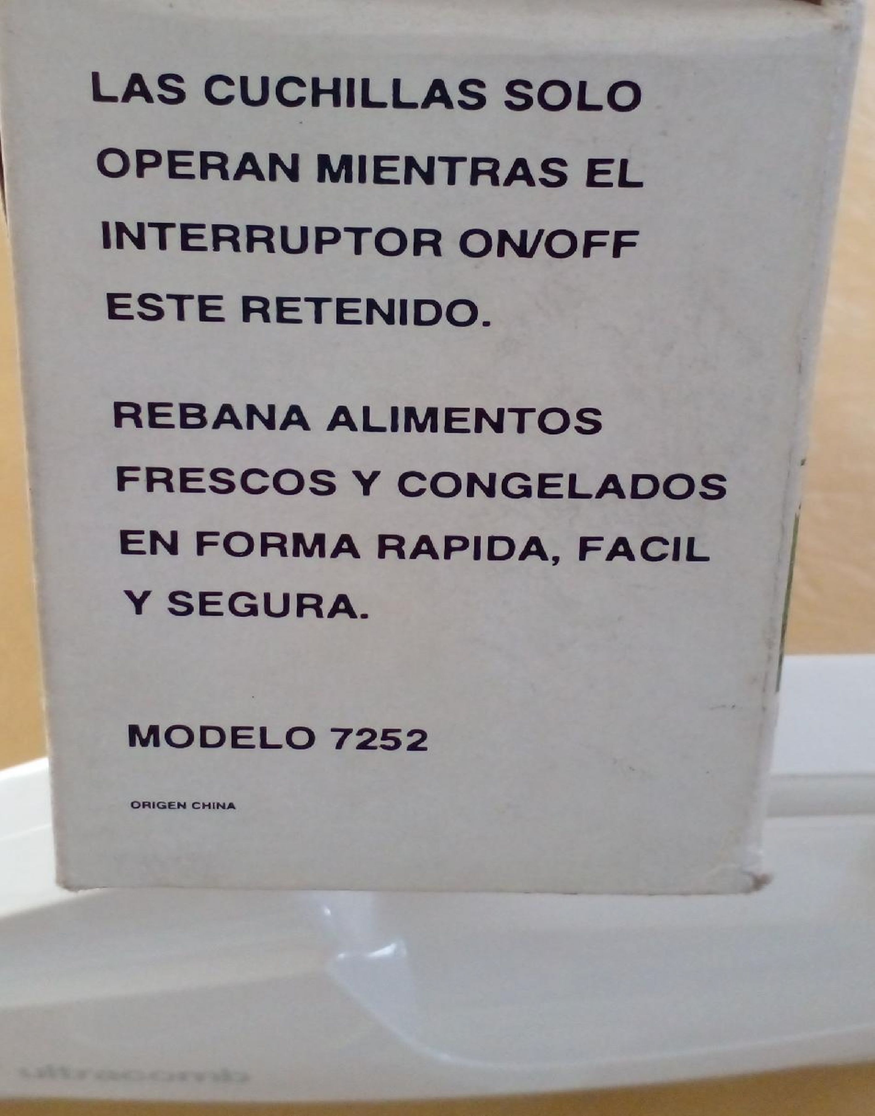 Nuevo,no tiene uso. Contiene dos cuchillas dobles de aceros inoxidable. Rebana alimentos frescos y congelados.