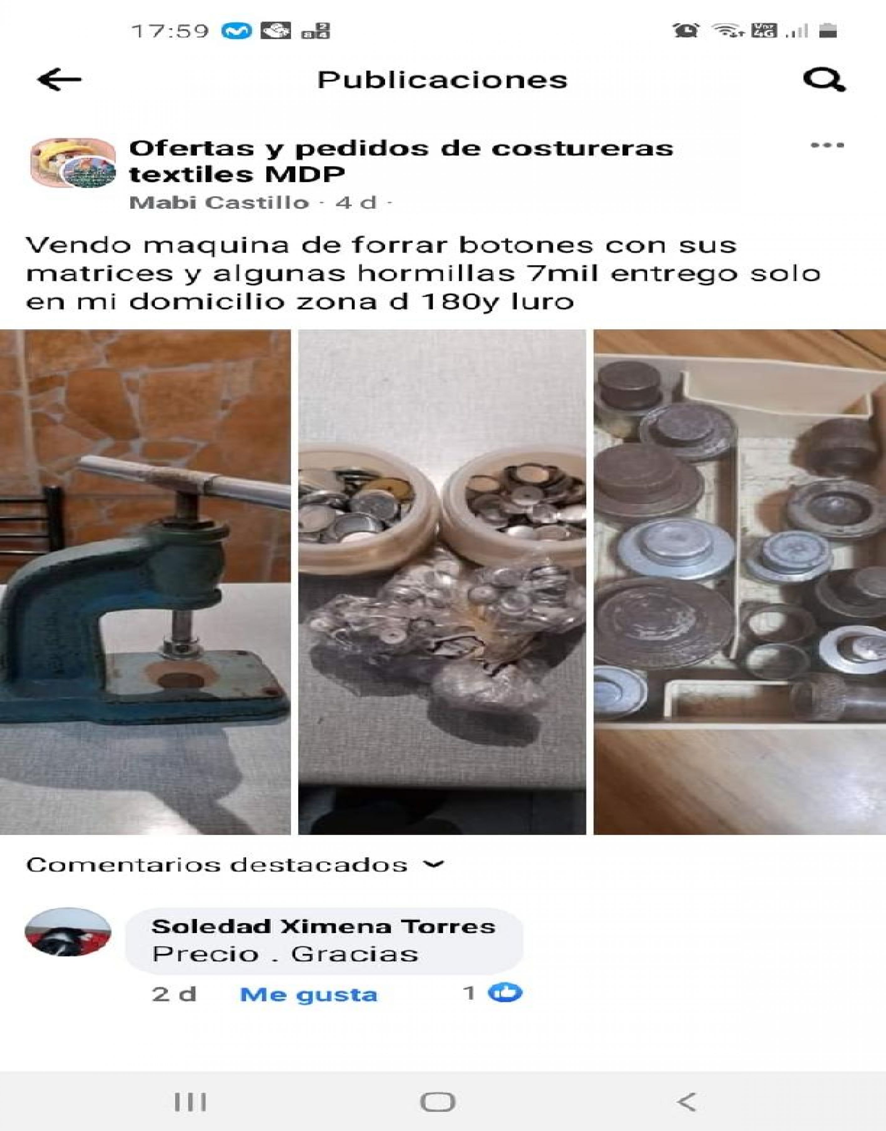 MAQUINA DE FORRAR BOTONES CON SUS HORMILLAS Y BOTONES EN MUY BUEN ESTADO