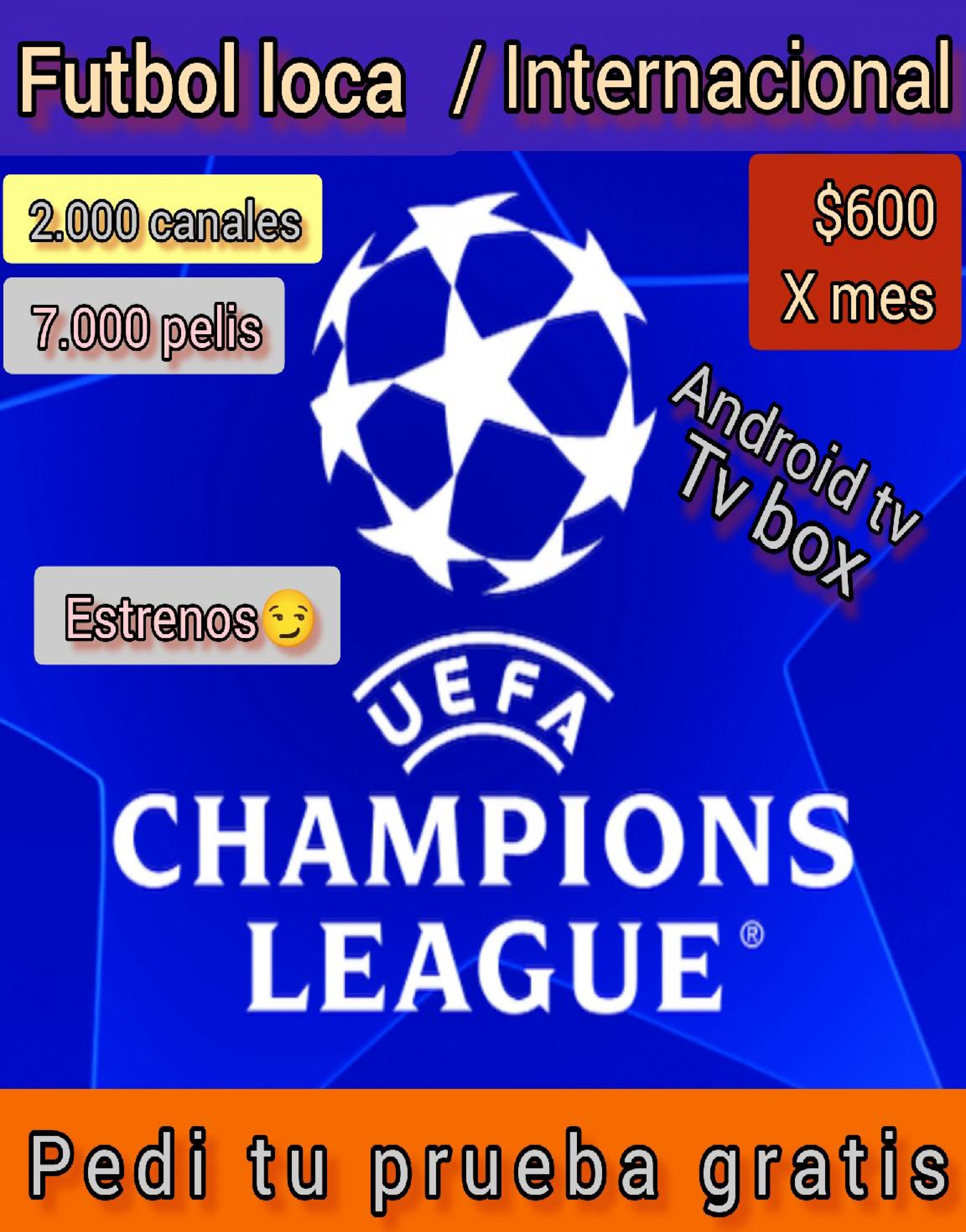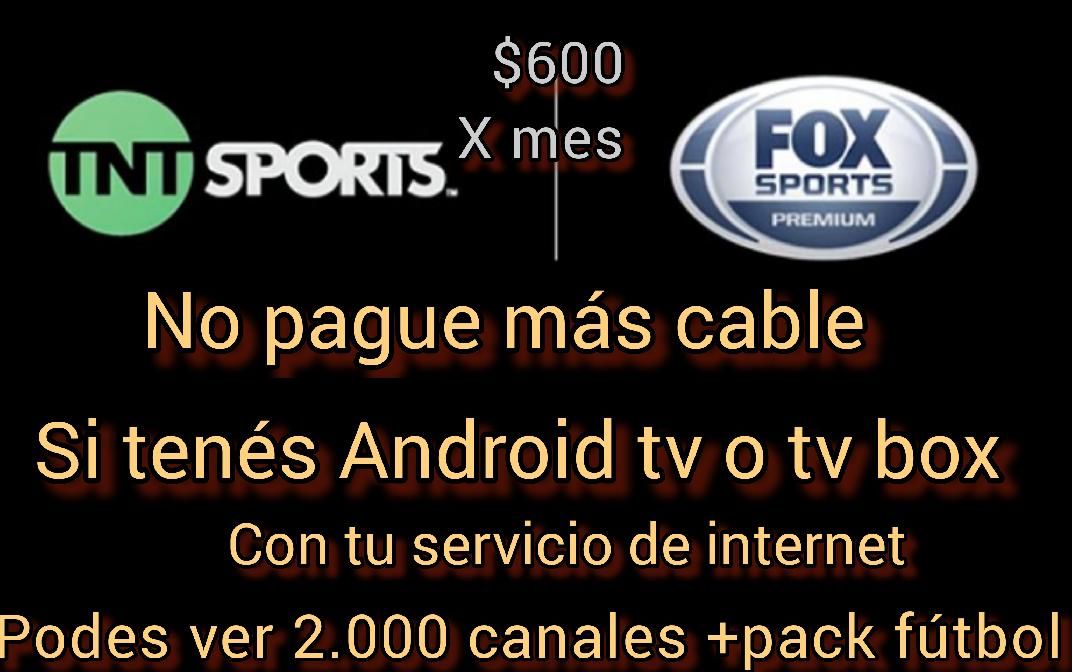 Es una app que sirve para ver tv. en cualquier dispositivo Android. Celular, tablet, Smart TV Android y TV box.Le ofrecemos un demo gratis de 3 hs sin compromiso , para que pruebe y vea lo estable que es ,no se corta y puede ver los partidos codificados ,canales de cable ,películas y algunas series .El servicio tiene un costo de $600 mensuales.*TELEVISIÓN EN VIVO POR INTERNET* EN ALTA DEFINICIÓNPrecios vigente mensuales 1 pantalla : $ 6002 pantallas :$ 950 3 pantallas : $ 1300