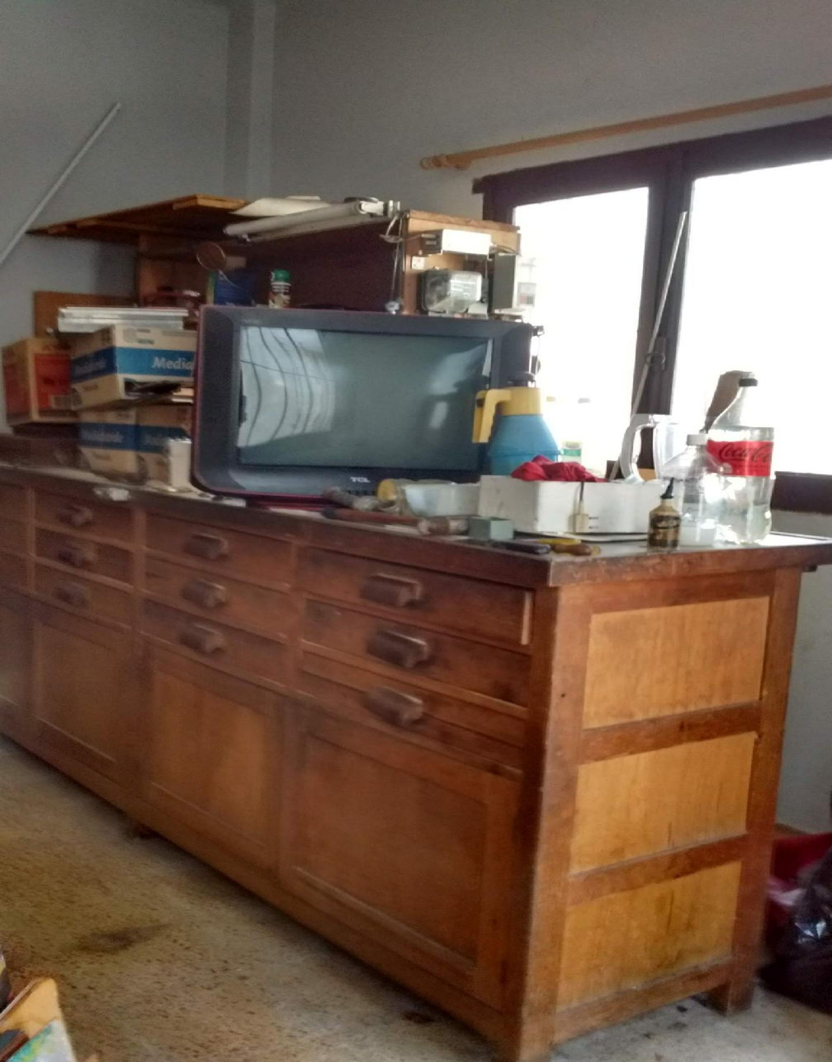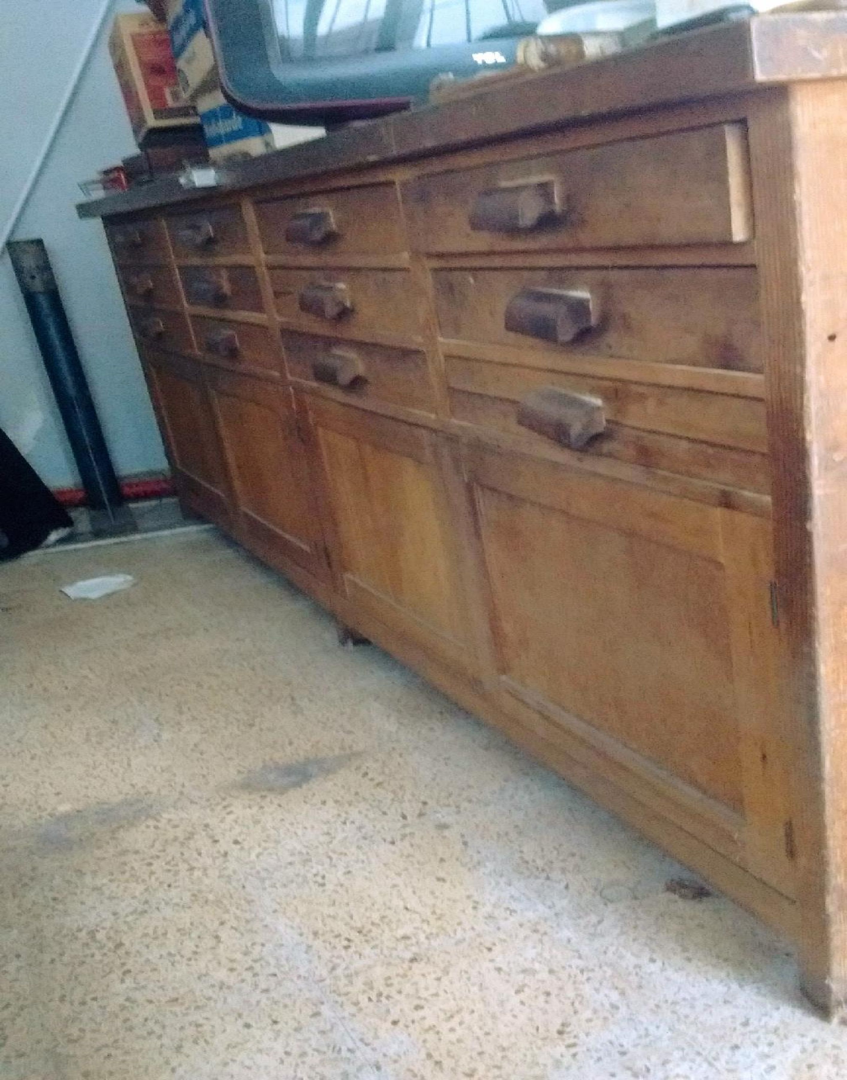 BANCO-MESA DE TRABAJO. TIENE USO EN EL HOGAR.FABRICACIÓN ROBUSTA TODO EN MADERA MACIZA Y NO ENCHAPADA.ESTÁ EN BUEN ESTADO.FABRICADO A MEDIDA, TIENE12 CAJONES Y 4 PUERTAS3 MTS. DE LARGO 0,70MT.DE PROF. 1 MT. DE ALTO.SE ENCUENTRA EN CIUDADELAA POCAS CUADRAS DE AV. FRANCISCO BEIRÓ Y GRAL. PAZ.CONTACTO: JOSÉ