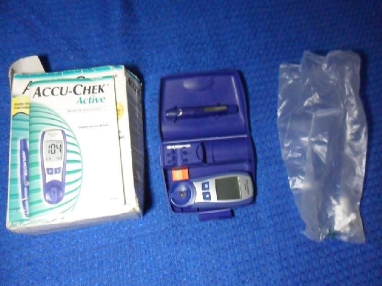 Medidor de glucosa Accu-chek Active de Roche, seis años de uso, perfectas condiciones, gasta poca pila, viene en estuche de plástico duro muy útil y práctico, viene con lanzetas.